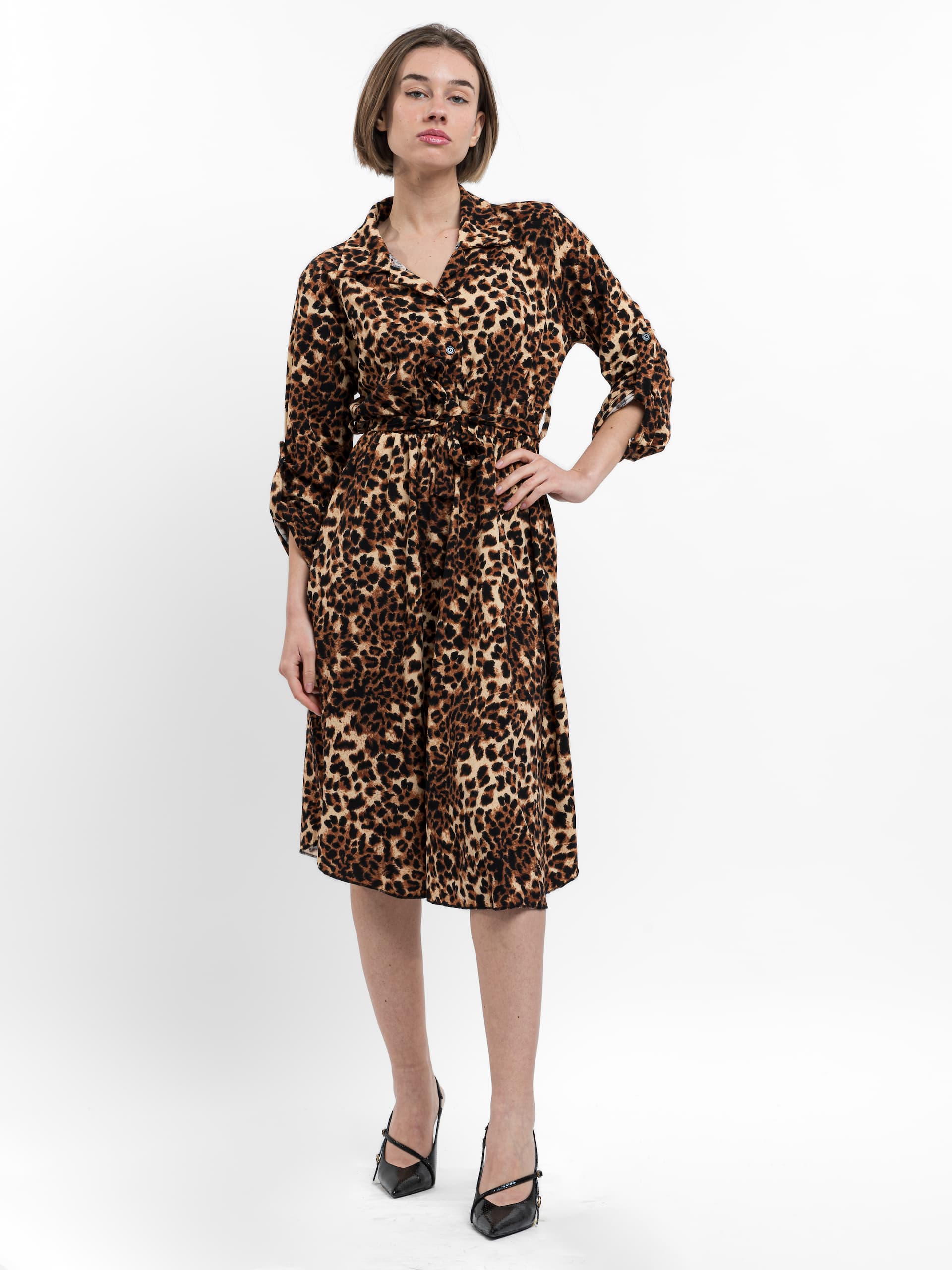 Σεμιζιέ φόρεμα με ζώνη σε ποικιλία τυπωμάτων