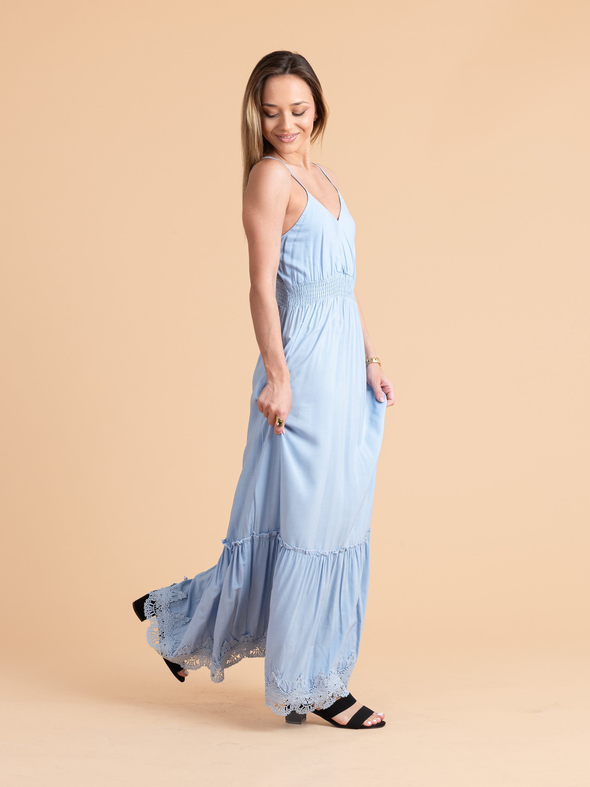Μακρύ βαμβακερό φόρεμα με τιράντα (5 χρώματα)