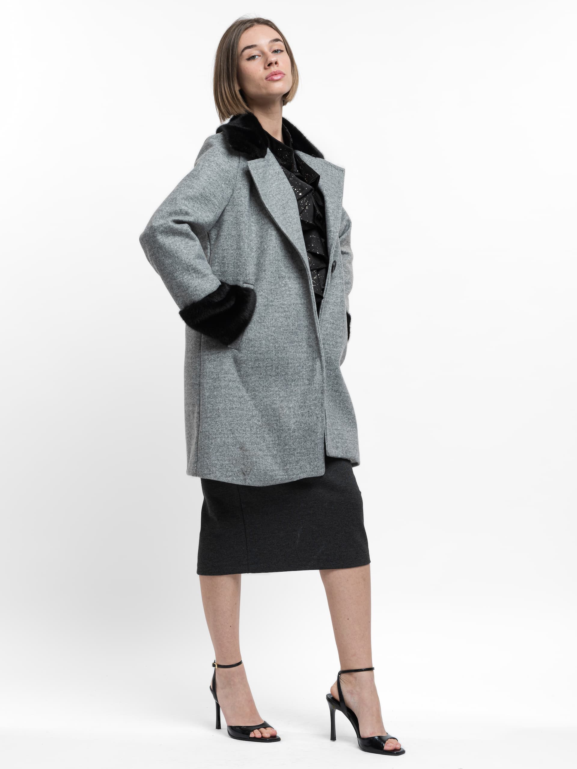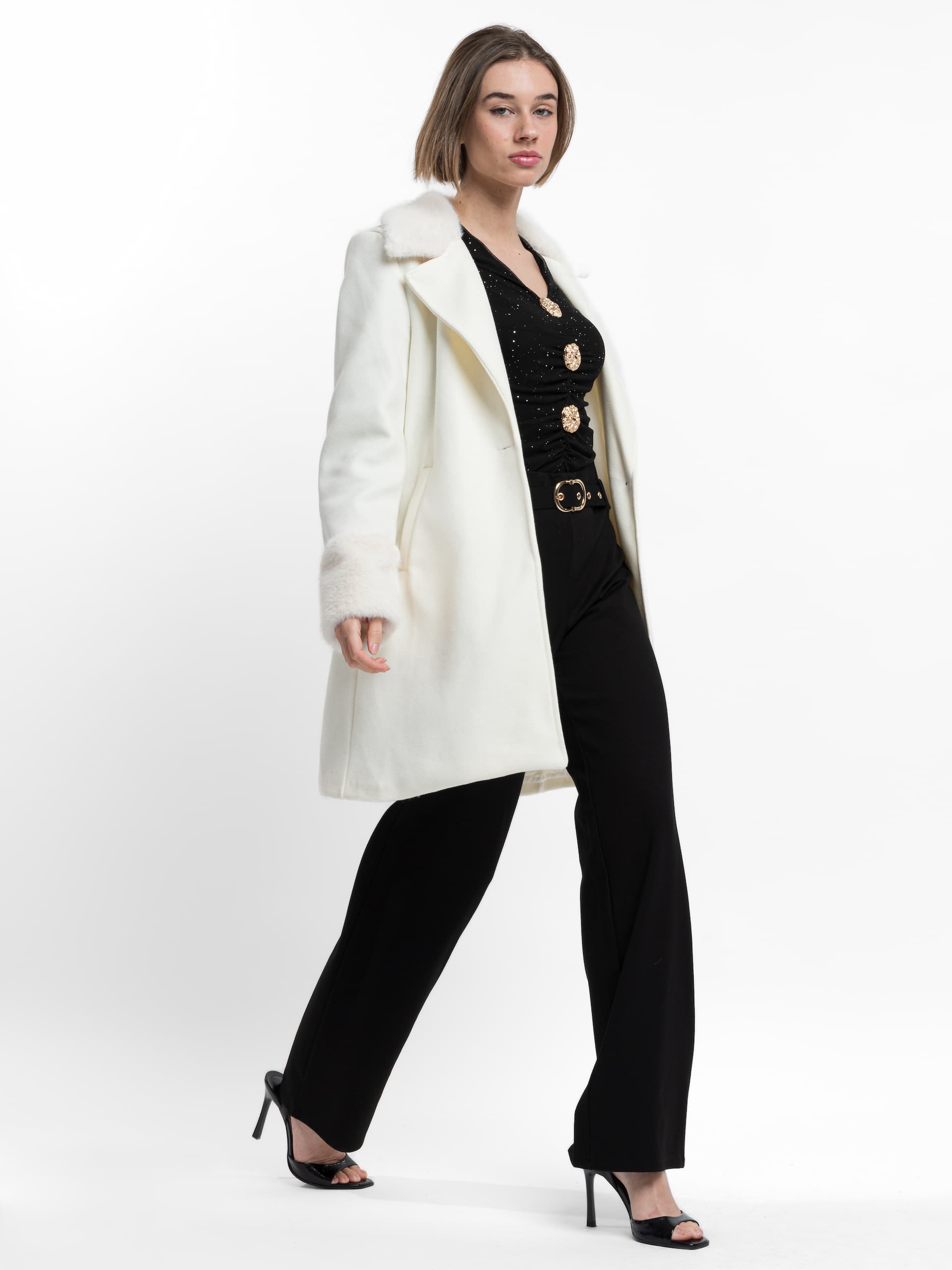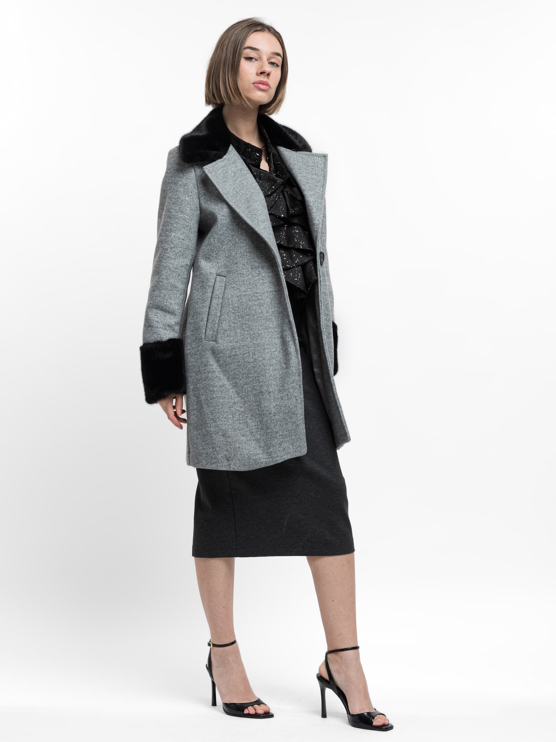 Παλτό μονόκουμπο με γούνα στον γιακά και την μανσέτα