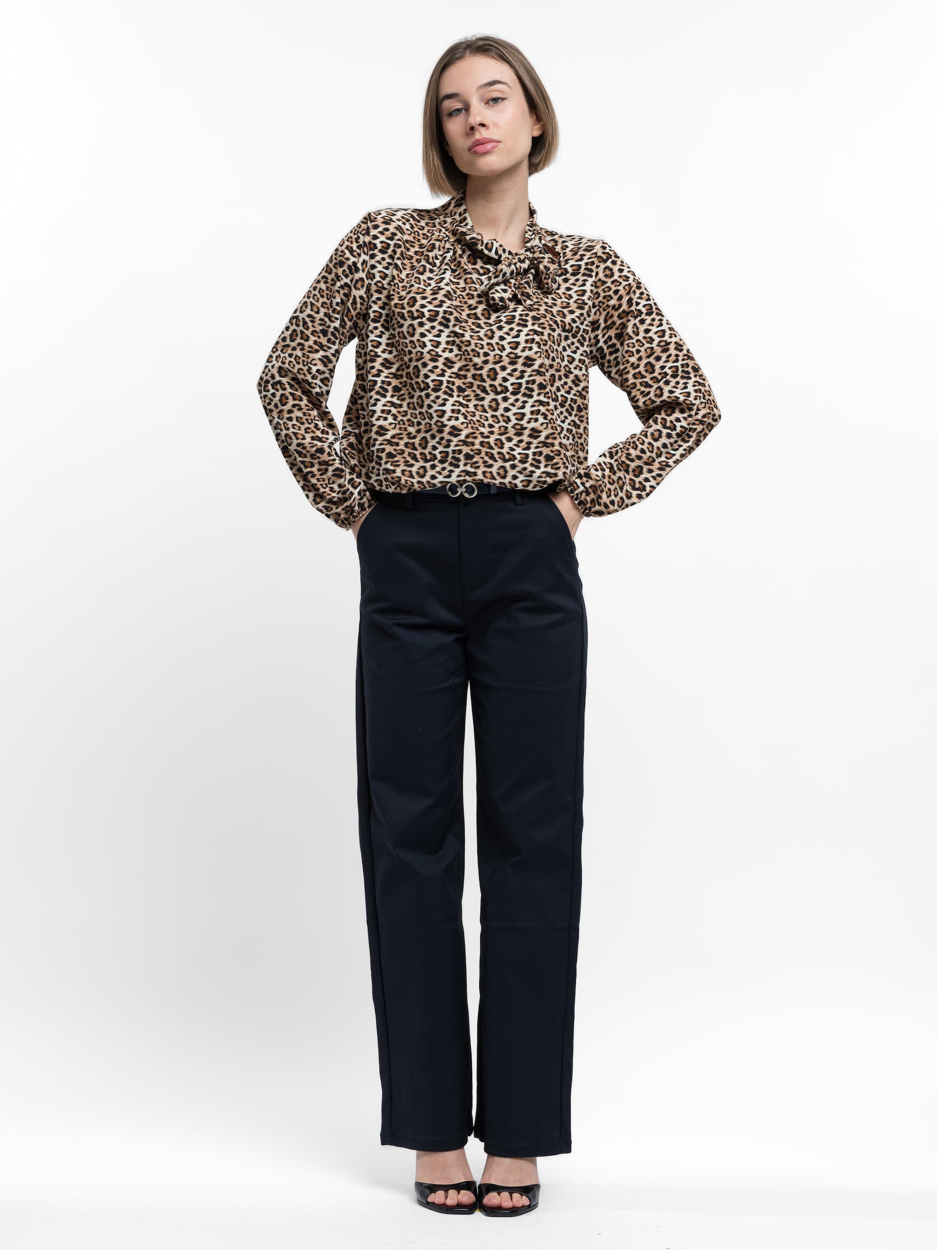 Υφασμάτινο παντελόνι με κουμπί, φερμουάρ και ζώνη