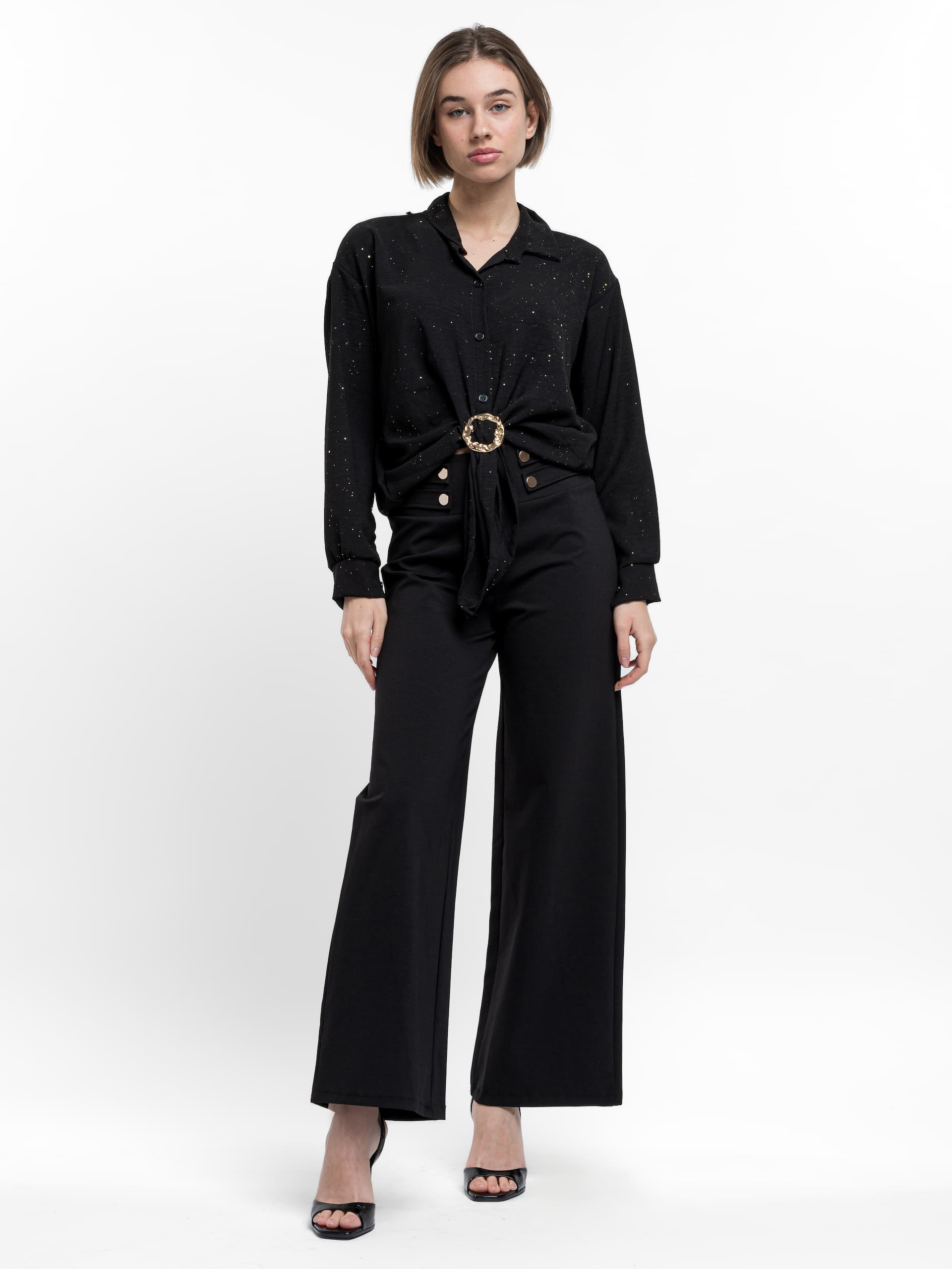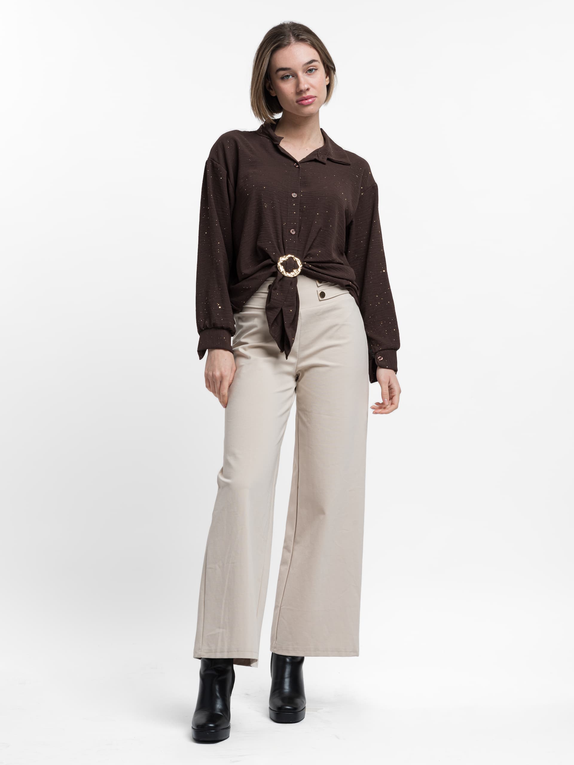 Πουκάμισο με χρυσό σχέδιο και διακοσμητική αγκράφα